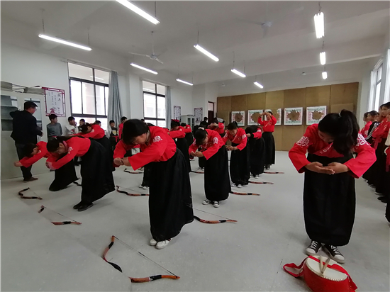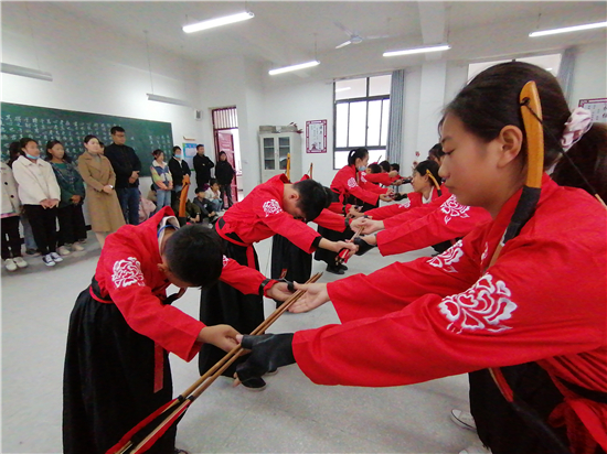 在皮營學(xué)?;顒邮?,學(xué)校舞蹈社團的小朋友展示了傳統(tǒng)儀式《鹿鳴》,深情的演繹,展示了他們對國學(xué)經(jīng)典的理解。禮射是禮樂文明重要組成部分,習(xí)射先習(xí)禮,射以觀德。習(xí)射可以強健體魄,其中還蘊含了眾多古人先賢的智慧。皮營學(xué)校禮射興趣班的小朋友進行禮射表演,隨著挾矢,正筈,審固,舉弓,引彀,發(fā)矢,斂弓,執(zhí)弦等一系列指令,拈弓搭弦展示禮射八法。在這里,學(xué)生們通過不同方式的展示,詮釋自己對“禮”“樂”的理解和認(rèn)知。
