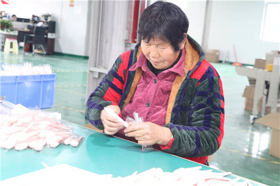 11月25日,家住鹿邑縣張店鎮(zhèn)劉莊村的孫小懶像往常一樣,吃過(guò)早餐后就到村里的河南雅彩美妝用具有限公司套管車(chē)間上班?!斑M(jìn)廠務(wù)工一人,穩(wěn)定致富一家”這句話正是孫小懶家的真實(shí)寫(xiě)照。前幾年,孫小懶的丈夫因病去世后,撇下三個(gè)兒子,最大的今年讀高中,最小的還在讀小學(xué),主要?jiǎng)趧?dòng)力的缺失讓孫小懶一家人的生活陷入困境。