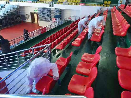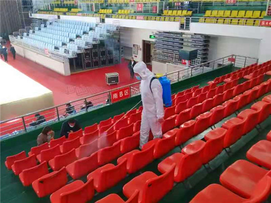 為確保疫情防控工作,保障第一屆周商大會順利進行,11月26日至27日,30余名工作人員對市體育館內(nèi)外、周商產(chǎn)品展示展覽區(qū)進行全面消毒殺菌,包括座椅,走廊,欄桿,門把手等,確保周商大會消殺工作不留死角。周口日報·周道客戶端見習(xí)記者 喬小納 攝