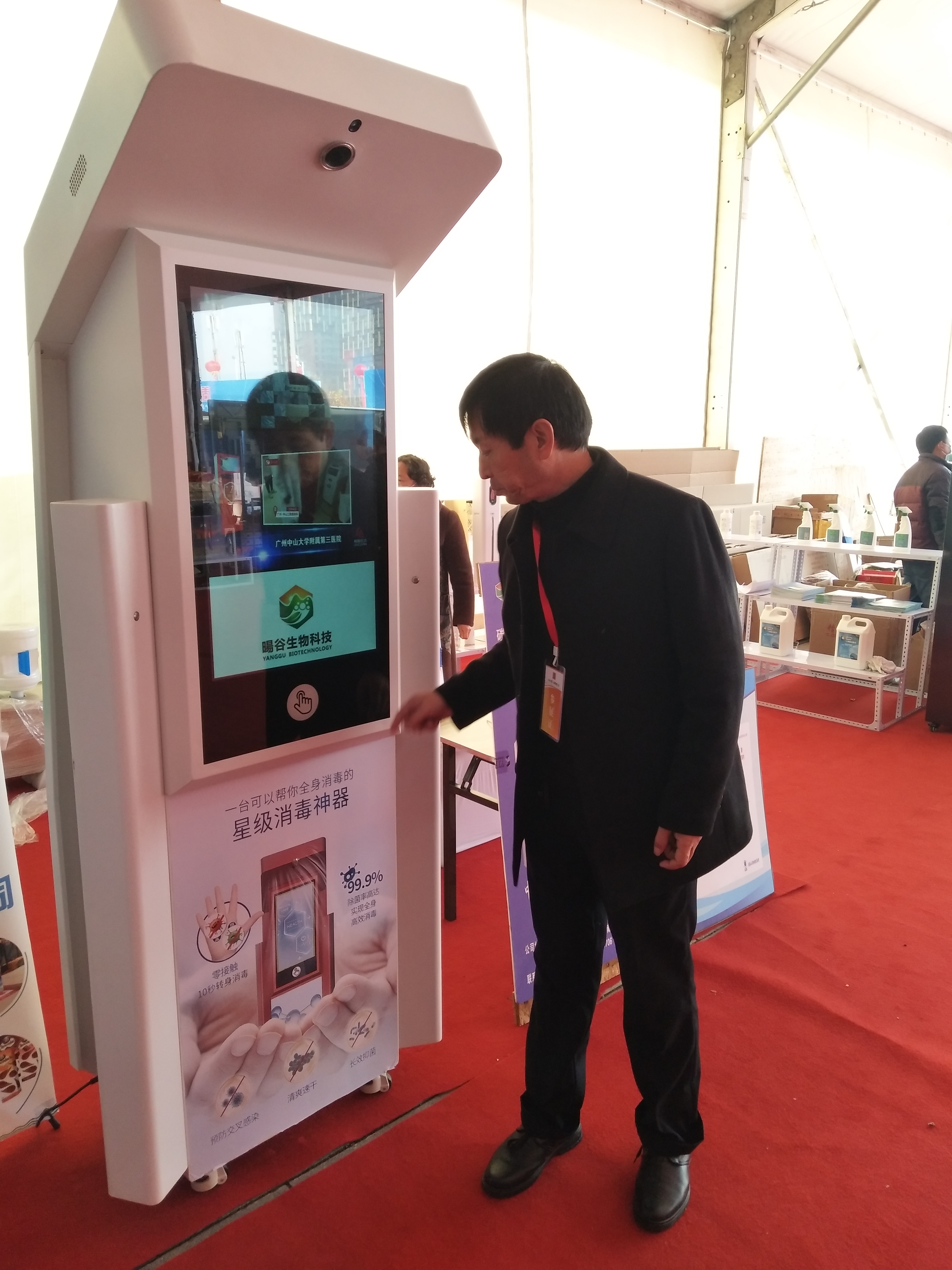 手掌往感控區(qū)上輕輕一罩,液晶屏四角就噴出霧化消毒液,大概持續(xù)10秒,足夠人轉(zhuǎn)一圈做周身消毒——在周商產(chǎn)品展示展覽大廳的西南角,北京陽谷生物科技有限公司市場部總監(jiān) 、項(xiàng)城人張清峰在介紹“人體感應(yīng)消毒機(jī)”,引得市民紛紛圍觀體驗(yàn)。由于消毒液沒有異味,部分市民質(zhì)疑是清水,對此張清峰說:“我們用的是‘竹芳牌’碳酸型微酸性次氯酸消毒液,我們的消毒機(jī)主要是面向校園推廣的,給孩子用的東西除了要有效,還得保證安全溫和,碳酸型的消毒液就沒有這么大的刺激性?!睋?jù)張清峰介紹,“人體感應(yīng)消毒機(jī)”是今年五月下旬生產(chǎn)的新品,目前處在推廣階段,“當(dāng)?shù)弥芸谝k第一屆周商大會的消息,我第一時(shí)間想到要把消毒機(jī)展示給家鄉(xiāng)父老。我是個(gè)在北京打拼十多年的項(xiàng)城人,目前河南分公司由我負(fù)責(zé),項(xiàng)城市政府給了我很多支持?!?/p>