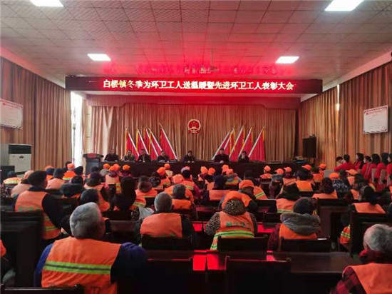 12月6日,白樓鎮(zhèn)召開(kāi)冬季為環(huán)衛(wèi)工人送溫暖暨先進(jìn)環(huán)衛(wèi)工人表彰大會(huì),114名環(huán)衛(wèi)工人收到暖心的棉衣。