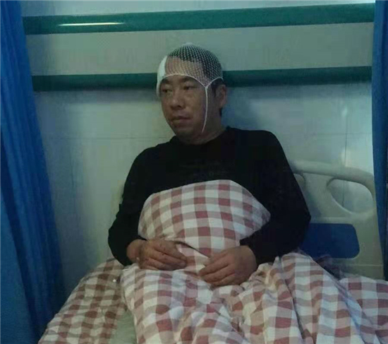 11月11日上午,在鎮(zhèn)領(lǐng)導(dǎo)的安排下,王少華前往縣醫(yī)保局為部分貧困人員及大病人員辦理慢性病本、領(lǐng)取健康扶貧相關(guān)材料。當(dāng)日,他領(lǐng)到材料已是上午10:30分,為了讓老百姓及時(shí)拿到慢性病本與扶貧材料,他馬不停蹄驅(qū)車趕回醫(yī)院。10:45分左右,他行駛到217省道與八一大道交叉口時(shí),一輛由南向北的半掛貨車直挺挺地撞到他的車身上。他頓時(shí)滿頭是血,當(dāng)場(chǎng)失去意識(shí)。120醫(yī)護(hù)人員趕到后,立即把他送到商水縣人民醫(yī)院急診室,完善頭顱、胸部、全腹CT等資料。之后,他接受清創(chuàng)縫合、輸液等相關(guān)處理。13:10分左右,王少華睜開眼睛,說的第一句話就是:“我要回醫(yī)院,慢性病本還在車?yán)?,我要給他們送去……”住院5天后,大腦嚴(yán)重受損的王少華還不記得車禍的經(jīng)過,一周后才能獨(dú)立行走。