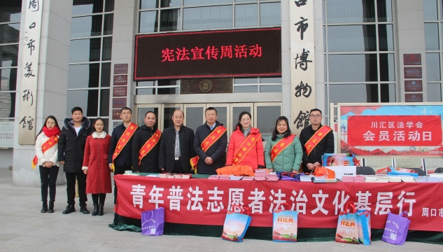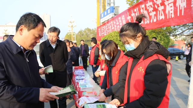 12月3日,在第七個國家憲法日來臨之際,周口市委政法委、周口市法學(xué)會、川匯區(qū)法學(xué)會,聯(lián)合團體會員單位市博物館、市文物保護中心開展憲法、國家安全、反邪教宣傳活動,讓遵守憲法和法律在全社會成為習(xí)慣、成為自覺。周口市委政法委副書記張曉、二級調(diào)研員朱建民參加普法宣傳活動。