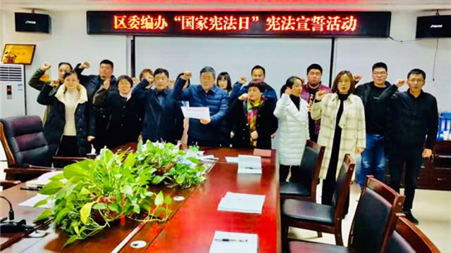 12月4日是第七個國家憲法日。為弘揚憲法精神、維護憲法權(quán)威,當(dāng)日,川匯區(qū)人和街道辦事處全體班子成員、機關(guān)干部、人大聯(lián)絡(luò)站代表、各社區(qū)“兩委”班子成員90余人在辦事處新時代文明實踐所舉行了憲法宣誓活動。