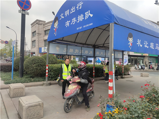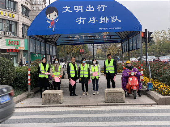 “您好,現(xiàn)在是紅燈,為了安全請(qǐng)等綠燈后再走?!薄罢?qǐng)?jiān)偻笸艘稽c(diǎn),不要擋住汽車通道……”12月5日是第35個(gè)國(guó)際志愿者日,當(dāng)日上午8時(shí),正值人流高峰期,在浙江省杭州市富陽(yáng)區(qū)春江街道大橋路和春南路交叉口,志愿者崔守領(lǐng)一行人身著反光背心在該路口緊張忙碌著,勸導(dǎo)行人文明出行、安全出行,為冬日的杭州增添了一股股暖意。