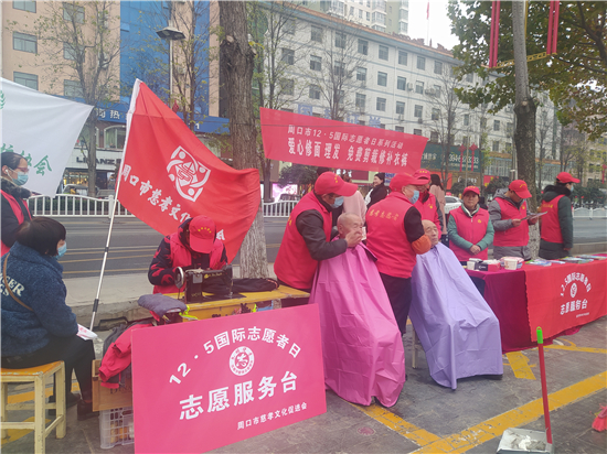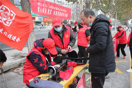 12月6日下午,周口市慈孝文化促進(jìn)會(huì)、周口環(huán)境保護(hù)協(xié)會(huì)的志愿者來(lái)到周口中心城區(qū)五一文化廣場(chǎng)開(kāi)展以愛(ài)心剪發(fā)、免費(fèi)剪裁、修補(bǔ)衣褲為主要內(nèi)容的便民志愿服務(wù)活動(dòng)。