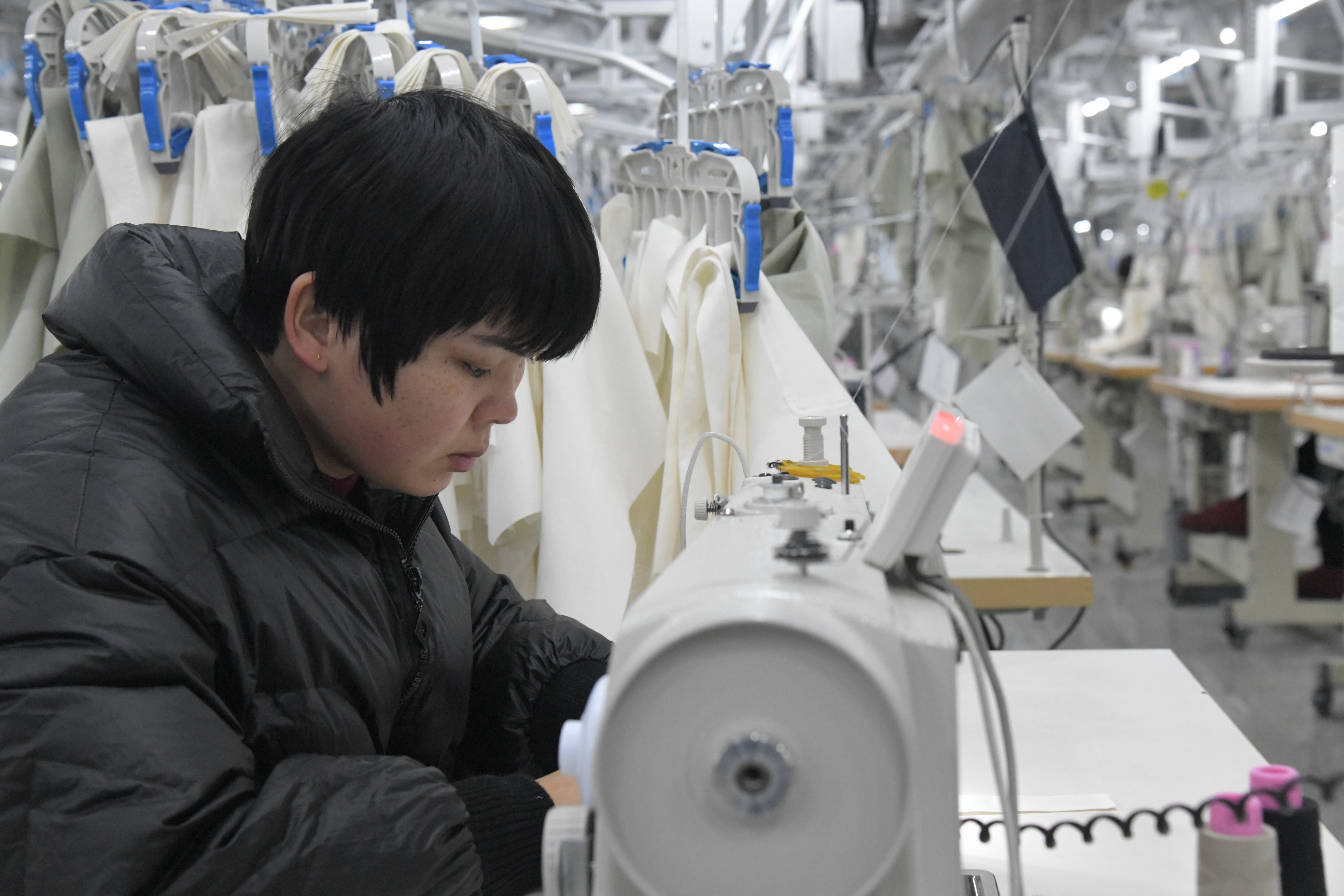 12月17日,在商水縣產(chǎn)業(yè)集聚區(qū)雅戈?duì)柺⑻┘徔椆I(yè)園一現(xiàn)代化車(chē)間內(nèi),紡織女工正在制作外貿(mào)訂單服裝。雅戈?duì)柺⑻┘徔椆I(yè)園是周口市重點(diǎn)招商引資企業(yè),總投資48億元,占地2000畝,是集棉紡、面料、印染、成衣、進(jìn)出口貿(mào)易、跨國(guó)經(jīng)營(yíng)于一體的大型綜合生產(chǎn)基地,長(zhǎng)期代加工雅戈?duì)?、PVH等國(guó)際品牌。該項(xiàng)目一期已經(jīng)投產(chǎn),全部建成后將填補(bǔ)我市紡織服裝行業(yè)缺少高端品牌的空白,促進(jìn)我市輕紡工業(yè)的發(fā)展。
