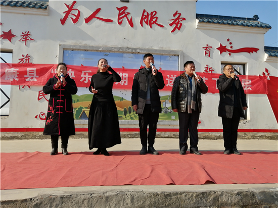 當日上午8時30分,文藝演出伴著舞蹈《開門紅》拉開了序幕。豫劇、道情、舞蹈等節(jié)目依次上演。豫劇《朝陽溝》《清風亭》百姓愛聽,道情《王金豆借糧》接地氣群眾喜歡。臺上演員演出投入,臺下群眾掌聲鼓勵。村民李領(lǐng)說:“在家門口看戲,享受文化大餐,真得謝謝演員們不畏嚴寒,給我們送來這么精彩的文藝節(jié)目。”