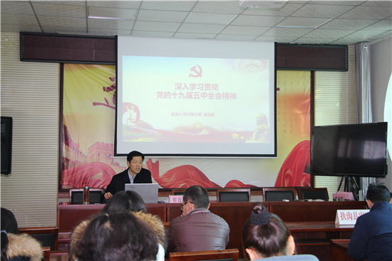 “黨的十九屆五中全會是在我國將進入新發(fā)展階段、實現(xiàn)中華民族偉大復(fù)興正處于關(guān)鍵時期召開的一次具有全局性、歷史性意義的會議?!?2月19日,扶溝縣審計局召開學(xué)習(xí)貫徹十九屆五中全會精神宣講大會,由局黨組書記翟連生作宣講報告,該局全體干部職工共40余人參加了宣講會。