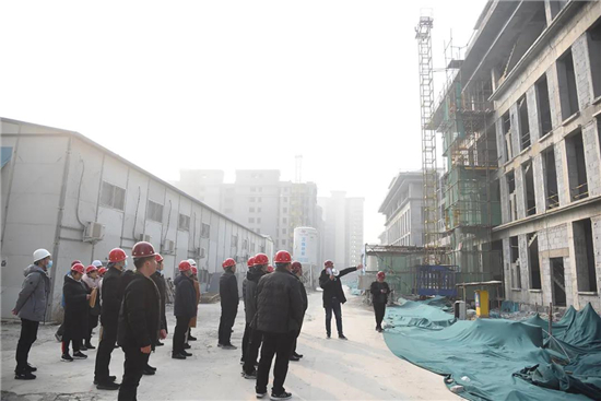 當(dāng)日上午,受院長于健委托,院領(lǐng)導(dǎo)張廣海、葉達林、王文鋒、王成坤帶領(lǐng)醫(yī)政、護理、控感等相關(guān)職能科室負責(zé)人,一行20余人到建設(shè)工地現(xiàn)場察看。施工方技術(shù)人員詳細介紹了門診樓、病房樓等各樓層的功能定位、科室布局、水暖線路等,雙方就一些細節(jié)問題進行深入交流。