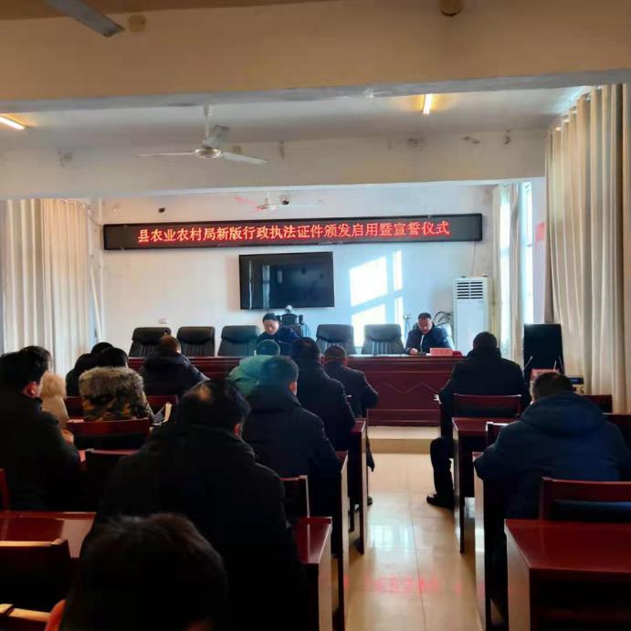 “我鄭重向祖國、向人民宣誓:忠于國家,忠于人民,忠于憲法和法律;堅(jiān)持執(zhí)法為民,堅(jiān)持依法行政,維護(hù)公平正義;以維護(hù)人民群眾利益、維護(hù)法律權(quán)威為已任,有法必依,違法必究,認(rèn)真履行法定職責(zé)?!?2月31日上午9時,鹿邑縣農(nóng)業(yè)農(nóng)村局在三樓會議室召開新版農(nóng)業(yè)綜合行政執(zhí)法證件頒發(fā)啟用暨宣誓儀式大會。該局局長陳東振為51名執(zhí)法人員辦法了新版行政執(zhí)法證并提出具體要求。副局長丁文杰主持宣誓儀式大會并領(lǐng)誓。