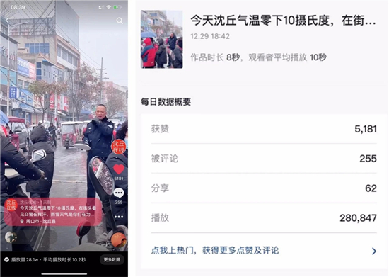 幾天來,一段關(guān)于沈丘交警的抖音徹底火了!一名學(xué)生家長把這段視頻上傳到了抖音,沒想到,短短幾天時(shí)間,該視頻播放量近三十萬……