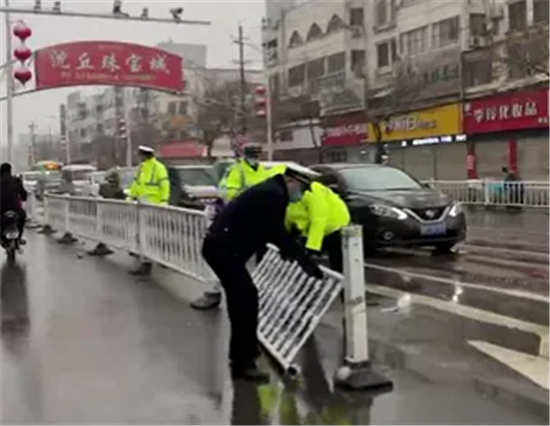 走在路上,雪花片子就往臉上撲,迎面的小風(fēng)像刀子一樣,即使你不愿意,也要跟你進(jìn)行親密接觸。到沈丘縣回民小學(xué)東邊的十字路口,各路送娃大軍從四面八方涌來,那真是車來車往,熙熙攘攘。兩輪的三輪的四輪的,瞬間一起往學(xué)校門口涌去。原本送完娃多少都會堵一會,今天竟然沒有堵車!后來才知道學(xué)校這邊有個(gè)警察很早就來現(xiàn)場指揮交通。