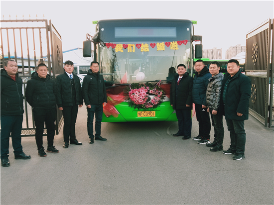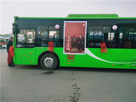 1月1日早上,裝飾一新的6輛迎親公交車吸引了眾人的目光。周口公交一公司19路公交車司機、新郎買亞飛用公交車,迎娶同為公交車司機的新娘裴丹陽,被當作婚車的公交車為新能源車,正是新郎和新娘平時駕駛的19路和9路公交車,以及15路公交車。整個婚禮,親朋好友都是乘坐公交車趕往婚禮現(xiàn)場,環(huán)保又有新意。