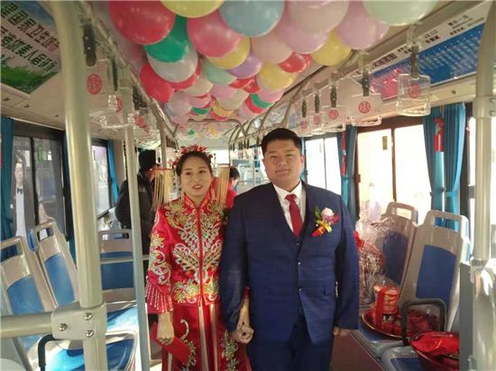 “這個想法是我和我媳婦一起商量出來的。我們覺得別人結婚都是用婚車,有點千篇一律。我們作為公交人就想另辟蹊徑,用我們公司的公交車當婚車,同時也倡導綠色出行,還很有紀念意義。” 新郎買亞飛告訴記者。