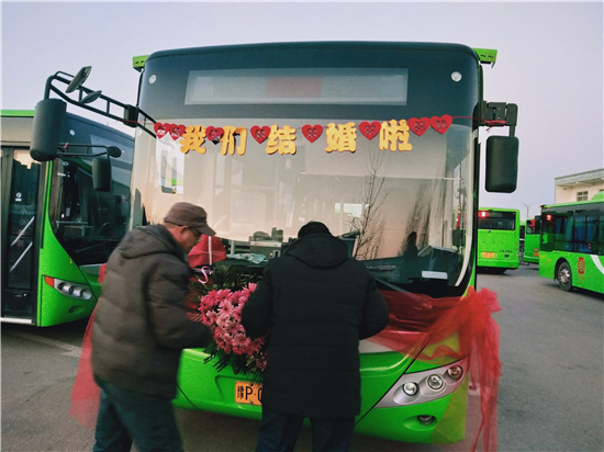 這次公交車當婚車的創(chuàng)意,也得到了他們雙方父母以及公司領導的大力支持。市公交一公司書記李彥軍說:“買亞飛和裴丹陽都是公交人,用公交車也是為了提倡大家支持綠色出行,積極響應政府節(jié)能減排政策,使用綠色公共交通工具舉辦婚禮,杜絕鋪張浪費,環(huán)保又時尚。兩位新人在工作中相識相知,互幫互助,在平凡的工作崗位中共同進步,真正詮釋了為市民服務的崗位精神。”③7