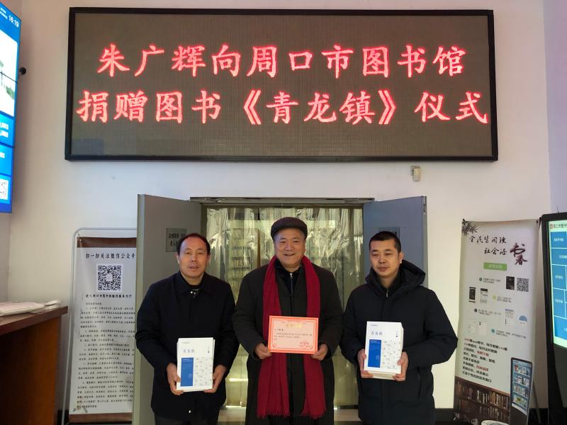 市圖書館館長李佳說,朱廣輝是我市知名作家,他一直致力于文化事業(yè),為推動和宣傳周口文化做出了一定貢獻。朱廣輝將《青龍鎮(zhèn)》小說集捐贈給市圖書館,體現(xiàn)了他濃濃的問人情懷和作為作家的社會擔當。市圖書館希望我市作家廣泛參與捐贈,發(fā)揮圖書傳承文化、傳遞文明價值,進一步推進我市文化自信。②9