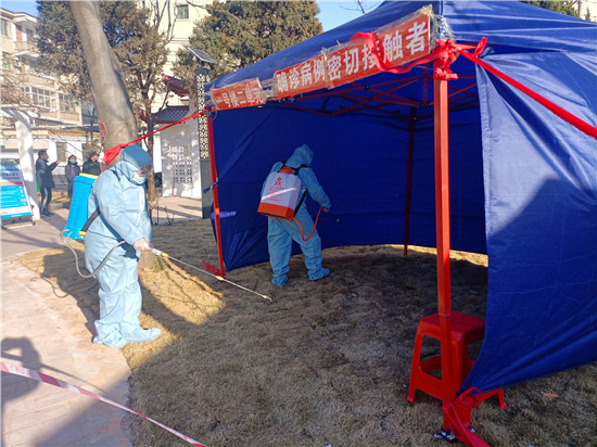 演練開始后,公安部門按照新冠肺炎疫情公共衛(wèi)生應(yīng)急處置預(yù)案要求,立即下達指令,派出所民警到達現(xiàn)場維護秩序,區(qū)域控制,拉警戒線,嚴(yán)格管控人員,禁止一切車輛和人員通行。街道辦事處迅速組織社區(qū)干部及社區(qū)網(wǎng)格員開展核酸檢測和宣傳動員工作,根據(jù)應(yīng)急預(yù)案分工開展群眾宣傳動員工作,并對患者居住單元電梯樓道等公共區(qū)域進行消毒。工作人員到確診患者家對2名密切接觸者進行流調(diào)和健康教育,將密切接觸者用120負壓救護車單人單車轉(zhuǎn)運至集中醫(yī)學(xué)隔離觀察點,對確診病例家庭環(huán)境進行采樣和消殺。