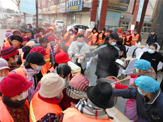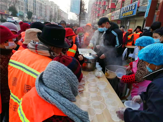 活動當天,在鑫豐苑·瑞隆府售樓部門口彌漫著臘八粥的香味。為了能讓大家喝到新鮮的臘八粥,這家愛心企業(yè)人員凌晨4點就開始忙碌了,在做好疫情防控的前提下,他們仔細挑選材料、淘洗、入鍋,經過兩個多小時的精心熬制,終于讓大家吃上了甜甜糯糯的臘八粥。暖暖的臘八粥,讓大家共同感受節(jié)日的氣氛。"打掃衛(wèi)生來得早,沒時間為家人熬粥,喝了這一碗熱乎乎的臘八粥,感覺渾身暖乎乎的",環(huán)衛(wèi)工人李女士說。
