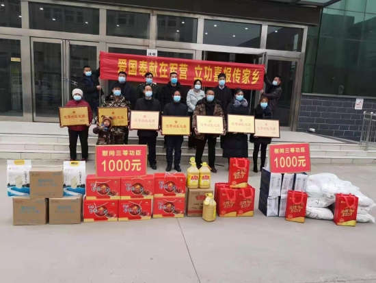 到立功軍人家庭,人武部和退役軍人事務(wù)局領(lǐng)導(dǎo)為立功軍人及家屬送上立功喜報(bào)、“功臣之家”匾額、慰問金及米、面、油、牛奶、牛肉等慰問品,并親切詢問軍人家屬的生活狀況,感謝他們?yōu)椴筷?duì)培養(yǎng)了優(yōu)秀人才。對(duì)立功受獎(jiǎng)退伍軍人表示祝賀,希望他們退役后繼續(xù)發(fā)揚(yáng)軍人本色,再接再厲,在新的崗位上取得更大的成績(jī)。