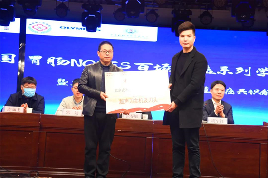 楊雨旺書記介紹了鄲城縣人民醫(yī)院胃腸外科的基本情況以及在近年發(fā)展中取得的長(zhǎng)足進(jìn)步。胡軍紅教授在致辭中指出,NOSES作為一種微創(chuàng)中的微創(chuàng)手術(shù),是一種醫(yī)患共贏的好技術(shù),是未來微創(chuàng)外科發(fā)展的趨勢(shì)和方向之一。他對(duì)不辭勞苦開展公益學(xué)術(shù)講座,推廣NOSES理念和技術(shù)的各位專家表示感謝,同時(shí)預(yù)祝系列學(xué)術(shù)活動(dòng)圓滿成功。 中國(guó)胃腸NOSES聯(lián)盟向鄲城縣人民醫(yī)院贈(zèng)送了《胃腸手術(shù)策略與操作圖解》等專業(yè)書籍20本和超聲刀一套。