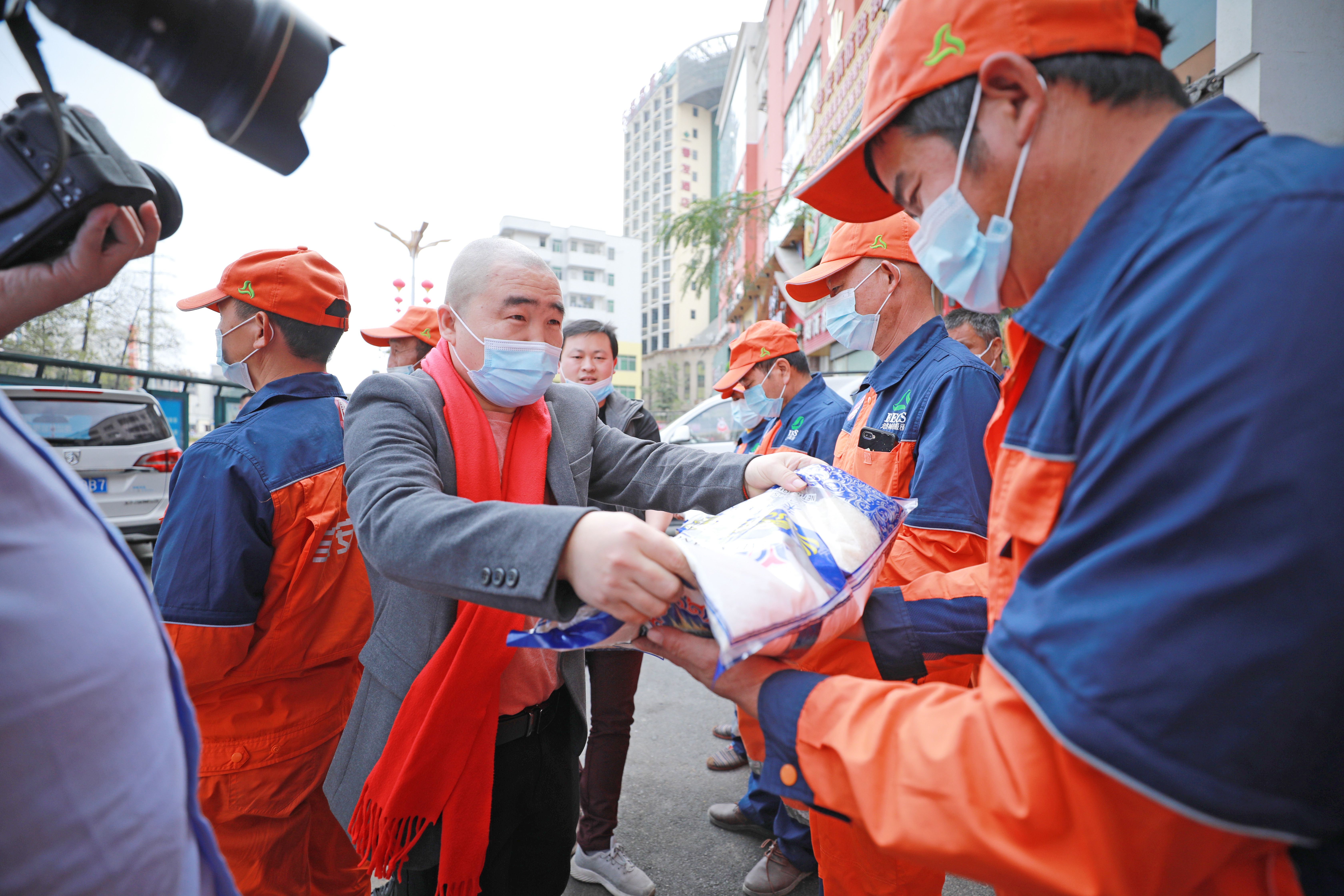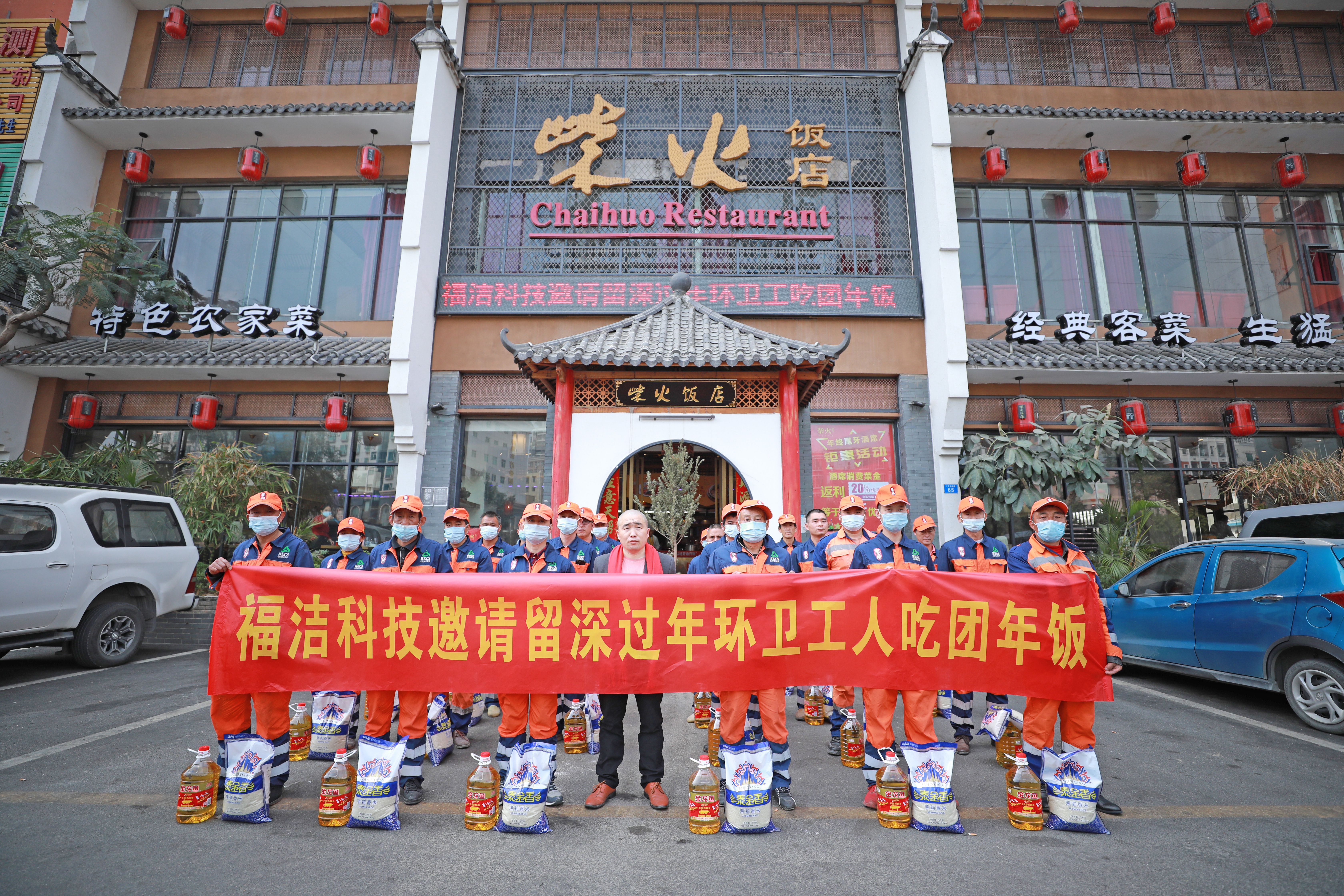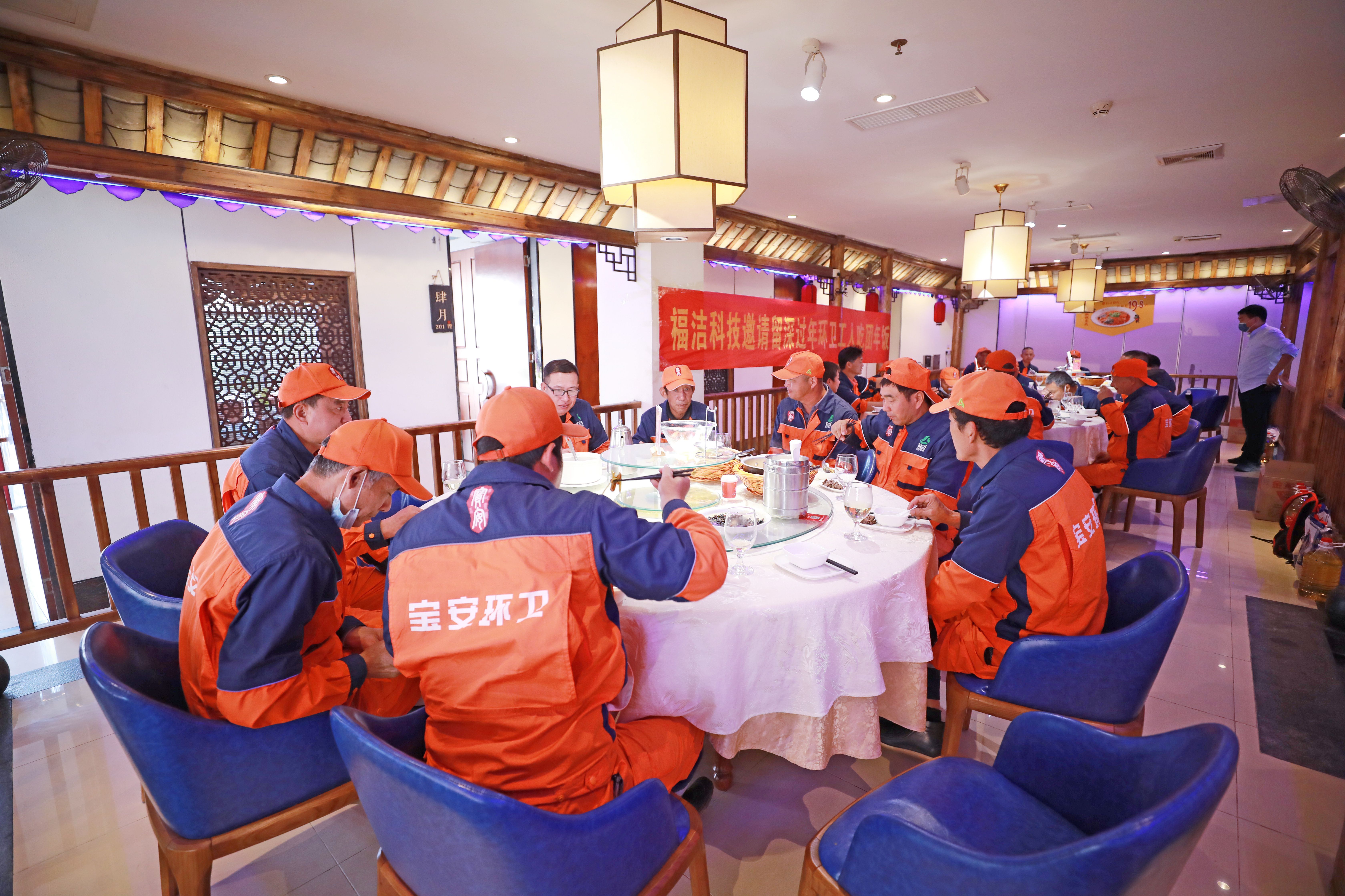 “今年過(guò)年我們都留在深圳了,張老板很有愛心,經(jīng)常關(guān)照我們環(huán)衛(wèi)工,很感謝他!”1月27日中午,在深圳寶安區(qū)新橋街道北環(huán)路柴火飯店,近30名(大部分為河南籍)留深過(guò)年的環(huán)衛(wèi)工在一起吃團(tuán)年飯,菜肴飄香,其樂(lè)融融。做東的是深圳市福潔科技公司的老板張高鵬。當(dāng)日中午,環(huán)衛(wèi)工們剛結(jié)束上午的工作,身穿工作服走進(jìn)深圳寶安區(qū)新橋街道柴火飯店。愛心老板張高鵬在門口迎接,并為大家送上大米、金龍魚油和新年祝福。白切雞、龍骨靚湯、小炒肉、紅燒肉、紅燒鯉魚、梅菜扣肉……餐桌上擺滿了各式菜肴,供環(huán)衛(wèi)工人們享用。大家一邊品嘗美味,一邊拉起家常。