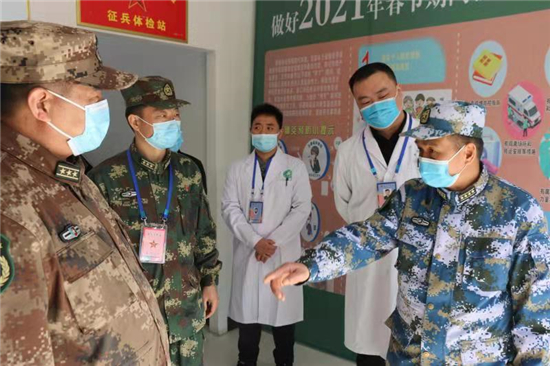 湯維政走進(jìn)內(nèi)科、外科、五官科、心電圖、心理測試等檢查科室,實(shí)地查看體檢站基礎(chǔ)設(shè)施、體檢流程、人員配備、疫情防控、后勤保障等情況。他看到體檢場所按照流程合理、尊重隱私、閉環(huán)管理的要求,結(jié)合疫情防控的需求優(yōu)化診室設(shè)置,醫(yī)務(wù)人員嚴(yán)格把控體檢項(xiàng)目的各個(gè)關(guān)口,給予了肯定和贊揚(yáng)。湯維政與現(xiàn)場候檢的應(yīng)征青年親切交談,了解他們的年齡、學(xué)歷、家庭等情況,對(duì)適齡青年、大學(xué)畢業(yè)生踴躍參軍、報(bào)效祖國的行為表示贊賞,勉勵(lì)他們積極接受祖國挑選,投身軍營建功立業(yè)。