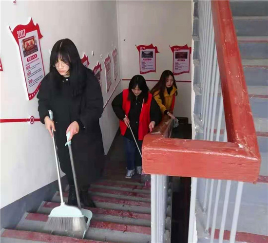 活動現(xiàn)場,青年志愿者身穿紅馬甲,拎起掃把、拖把、抹布等工具,全力投身到清潔行動中,幫助社區(qū)清掃衛(wèi)生死角、清運垃圾雜物、清潔樓道窗臺等,以青春之力積極創(chuàng)造干凈、整潔的節(jié)日環(huán)境。