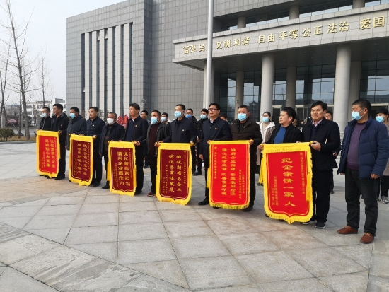 2月4日下午,淮陽(yáng)區(qū)康森木業(yè)有限公司、周口裕彩科技研發(fā)有限公司等6家企業(yè)代表為區(qū)優(yōu)化營(yíng)商環(huán)境專項(xiàng)治理工作組送來(lái)了6面錦旗和大量防疫物資,向工作組表達(dá)感激之情,對(duì)工作組人員高效快捷的工作給予高度贊揚(yáng)。