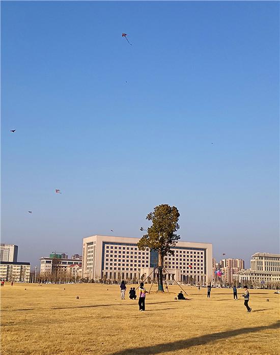 2月5日,我市天氣晴朗,不少市民帶著孩子來到戶外,享受溫暖的陽光、和煦的春風(fēng)、與孩子一起放紙鳶的天倫之樂。