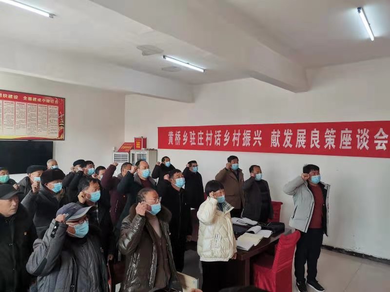 “我志愿加入中國共產(chǎn)黨……”駐莊村黨支部書記劉廣濤帶領(lǐng)與會黨員開展重溫入黨誓詞活動,面對黨旗,舉起右手,黨徽在胸前熠熠閃耀。隨后,以“微黨課”的形式,劉廣濤通報(bào)了家鄉(xiāng)變化,駐村第一書記張振芳領(lǐng)學(xué)了《習(xí)近平調(diào)研指導(dǎo)過的貧困村脫貧紀(jì)實(shí)》,與返鄉(xiāng)黨員們共話振興路,暢談發(fā)展良策。