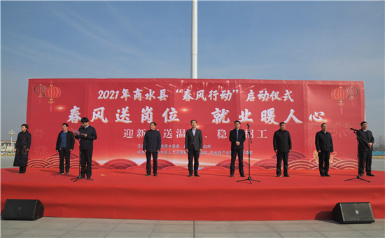 春風(fēng)送崗位,就業(yè)暖人心。春節(jié)假期剛過,2月18日,商水縣舉行2021年“春風(fēng)行動(dòng)”啟動(dòng)儀式暨企業(yè)春季用工招聘會(huì),為企業(yè)和求職者搭建一個(gè)雙向溝通交流的平臺(tái),讓用人單位挑選到適合企業(yè)發(fā)展的人才,也讓求職者在家門口找到適合自己的就業(yè)崗位??h委書記孔陽,縣長田林,縣人大常委會(huì)主任李德來,縣政協(xié)主席孫培忠,副縣長朱高建,縣政協(xié)副主席、工商聯(lián)主席彭發(fā)光,縣工會(huì)主席盧紅兵,縣集聚區(qū)管委會(huì)主任馬三華等出席啟動(dòng)儀式。啟動(dòng)儀式由朱高建主持。