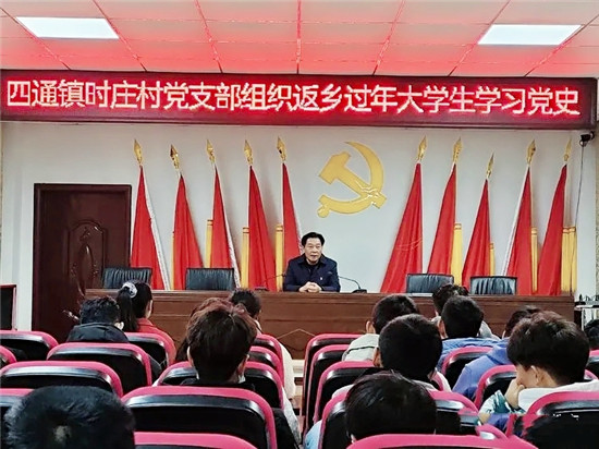在當(dāng)日活動(dòng)中,該村黨支部書記時(shí)興榮帶領(lǐng)返鄉(xiāng)大學(xué)生參觀時(shí)莊村中共黨史館,并為他們現(xiàn)場(chǎng)講解中國(guó)共產(chǎn)黨從一大到十九大的黨史歷程,隨后他們又一起前往時(shí)莊黨校進(jìn)行學(xué)習(xí)?!爸拔覀儧](méi)有學(xué)過(guò)黨史,也不太了解黨史,通過(guò)今天這一課,我們才真正了解到我黨的發(fā)展歷史。作為新時(shí)代的大學(xué)生,學(xué)業(yè)有成后,我們一定要報(bào)效祖國(guó),一定要不忘初心、牢記使命,為中華民族的復(fù)興努力奮斗作出貢獻(xiàn),堅(jiān)決做到聽(tīng)黨話、跟黨走、報(bào)黨恩?!眳⒓踊顒?dòng)的大學(xué)生時(shí)曼銀說(shuō)。