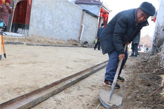 在宋河鎮(zhèn)劉橋村,支部書記張殿魁正在帶領(lǐng)村民平整路面?!拔覀兇宓闹鹘值缼啄昵熬屯怂嗦?,但是部分小巷子因經(jīng)費(fèi)不足一直沒(méi)有修通?!睆埖羁f(shuō),年初鎮(zhèn)黨委組織召開全鎮(zhèn)在外返鄉(xiāng)人士?jī)?yōu)秀代表座談會(huì),得到了在外鄉(xiāng)賢的積極支持,部分鄉(xiāng)賢捐款,帶動(dòng)村內(nèi)群眾籌集費(fèi)用,現(xiàn)在水泥路即將覆蓋全村大街小巷。