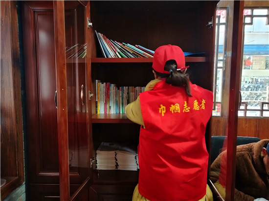 上午9點,天空中偶有零星小雨,市民驛站里卻有幾位市民正在這里讀書,古色古香的書柜,整齊地擺放著各類書籍,文學(xué)、百科、養(yǎng)生書籍俱全。周口市慈孝文化促進會的志愿者每天都在值班,隨時打掃衛(wèi)生,為市民提供力所能及的幫助。