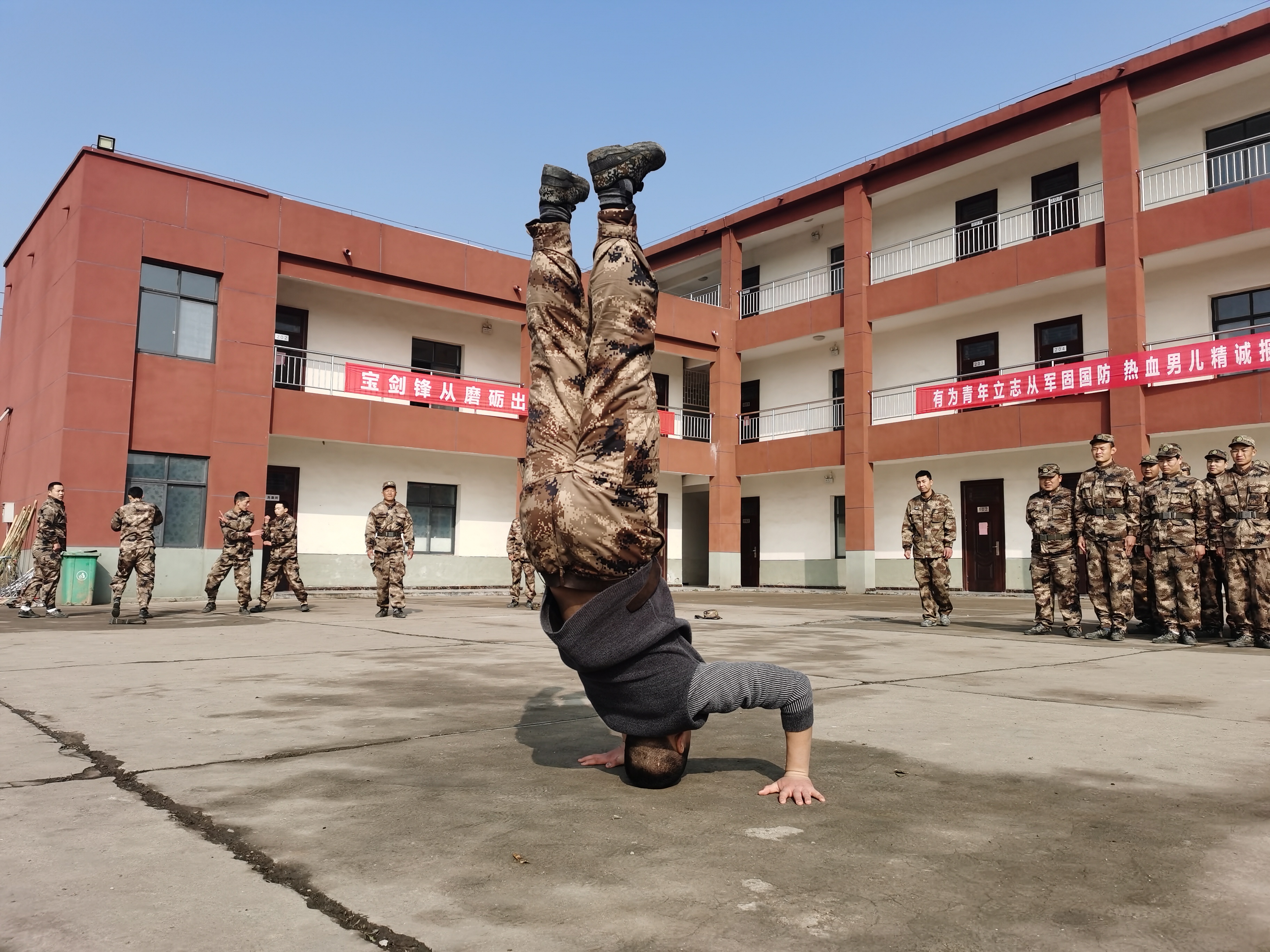 訓(xùn)練場(chǎng)上,口號(hào)嘹亮,士氣高昂,熱火朝天。湯維政走到預(yù)定新兵當(dāng)中,分別詢(xún)問(wèn)了幾名青年,問(wèn)他們多大年齡?什么文化程度?有沒(méi)有什么特長(zhǎng)?當(dāng)兵怕不怕吃苦等等;青年們一一回答,湯維政微微點(diǎn)頭……