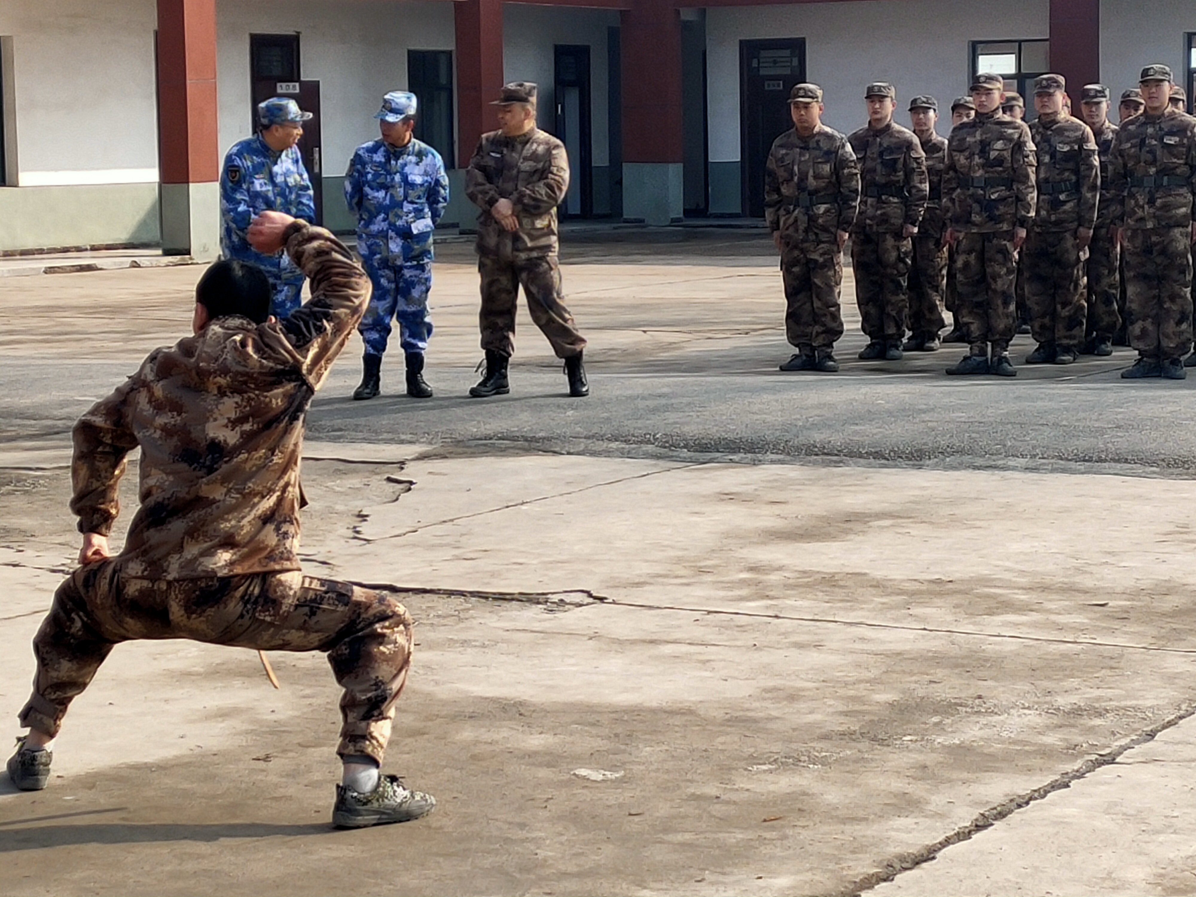“報(bào)告首長(zhǎng),我叫趙三朋,畢業(yè)于武漢體育學(xué)院,武術(shù)套路、散打和兵器專(zhuān)業(yè)。”在戰(zhàn)友們的歡呼聲中,趙三朋主動(dòng)請(qǐng)纓表演了一套傳統(tǒng)武術(shù)套路,只見(jiàn)他一招一式行云流水、虎虎生威 ,前后空翻嫻熟到位、收放自如,迎得戰(zhàn)友們陣陣喝彩聲,湯維政也禁不住連聲稱(chēng)贊。