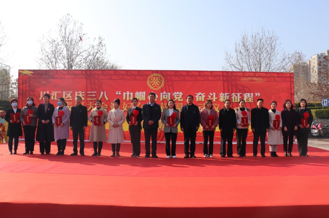 3月4日上午,川匯區(qū)慶三八“巾幗心向黨、奮斗新征程”表彰大會暨婦女維權周啟動儀式在文化廣場舉辦,區(qū)委副書記尚紅偉,副區(qū)長巴兵,區(qū)人大副主任張貴先,區(qū)政協(xié)副主席梁顯棟等有關領導出席活動,來自全區(qū)各辦事處、各委局婦女代表及巾幗志愿者表演隊共200多人參加活動,共慶“三八”。