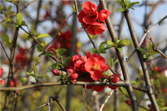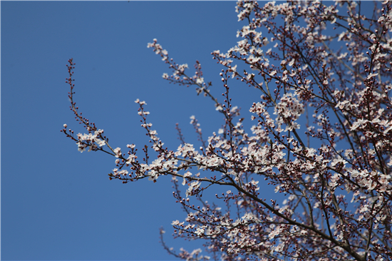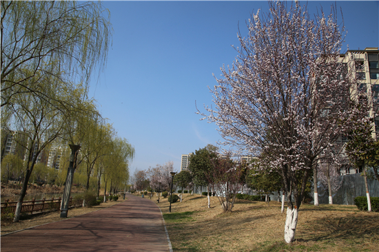 一排排的玉蘭花盛開爭艷,紫色的、白色的玉蘭花高聳在褐色的枝杈間,美不勝收。梨花、杏花、桃花、梅花組成了一道花墻,青枝、綠葉、紅花搭配得恰到好處,令市民忍不住駐足觀賞。②7