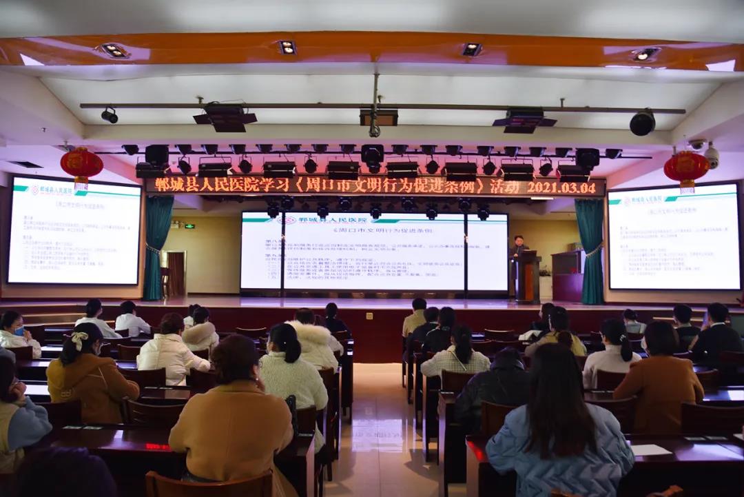 近日,鄲城縣人民醫(yī)院按照縣文明辦的要求,在全院范圍內(nèi)深入開展學習《周口市文明行為促進條例》活動。宣教科長孫小明結(jié)合醫(yī)院工作實際,對照《周口市文明行為促進條例》五章42條逐章逐條進行詳細解讀,重點強調(diào)了文明交通、文明旅游、文明餐桌、文明上網(wǎng)及窗口服務的部分條款。