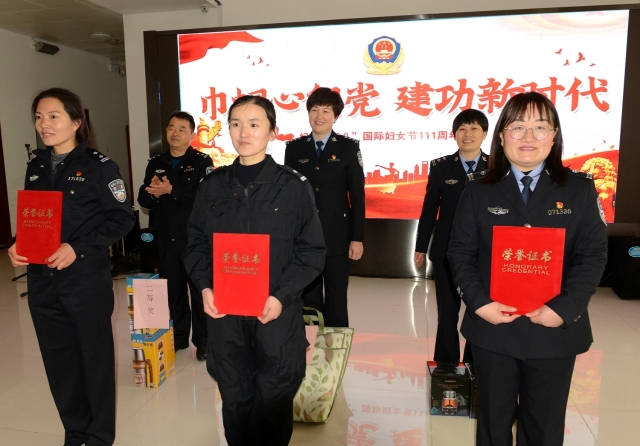 徐彩云同志在致辭中指出,在我們這個(gè)警營的大家庭里,女警在打擊犯罪、執(zhí)勤執(zhí)法、服務(wù)群眾、警務(wù)保障等各項(xiàng)工作中,默默無聞,任勞任怨,自覺肩負(fù)著事業(yè)、家庭雙重責(zé)任,用赤誠和堅(jiān)守展現(xiàn)女警巾幗不讓須眉的風(fēng)采,充分表現(xiàn)出扶溝女警堅(jiān)韌不拔、愛崗敬業(yè)、奮發(fā)進(jìn)取、無私奉獻(xiàn)的優(yōu)秀品質(zhì)和精神風(fēng)貌。她希望全局女同胞們繼續(xù)發(fā)揚(yáng)“巾幗不讓須眉,爭創(chuàng)一流業(yè)績”的實(shí)干精神,從全縣公安工作和隊(duì)伍建設(shè)的全局出發(fā),發(fā)揮女性特有的智慧才華和創(chuàng)造活力,在各自的工作崗位上腳踏實(shí)地、積極進(jìn)取,為推動(dòng)全縣公安工作發(fā)展作出更大的貢獻(xiàn)。