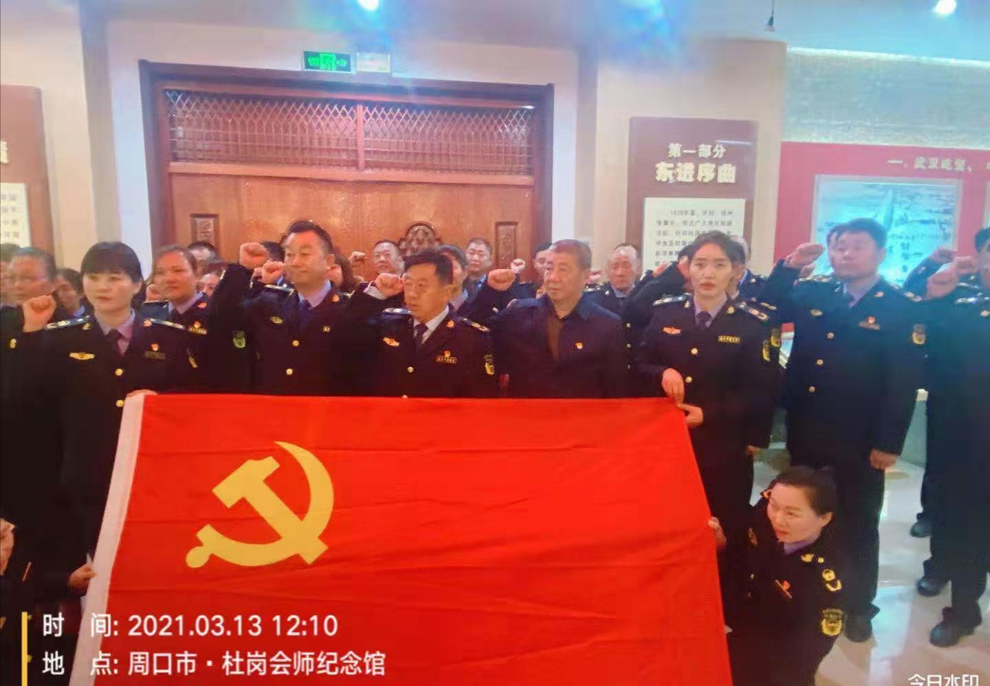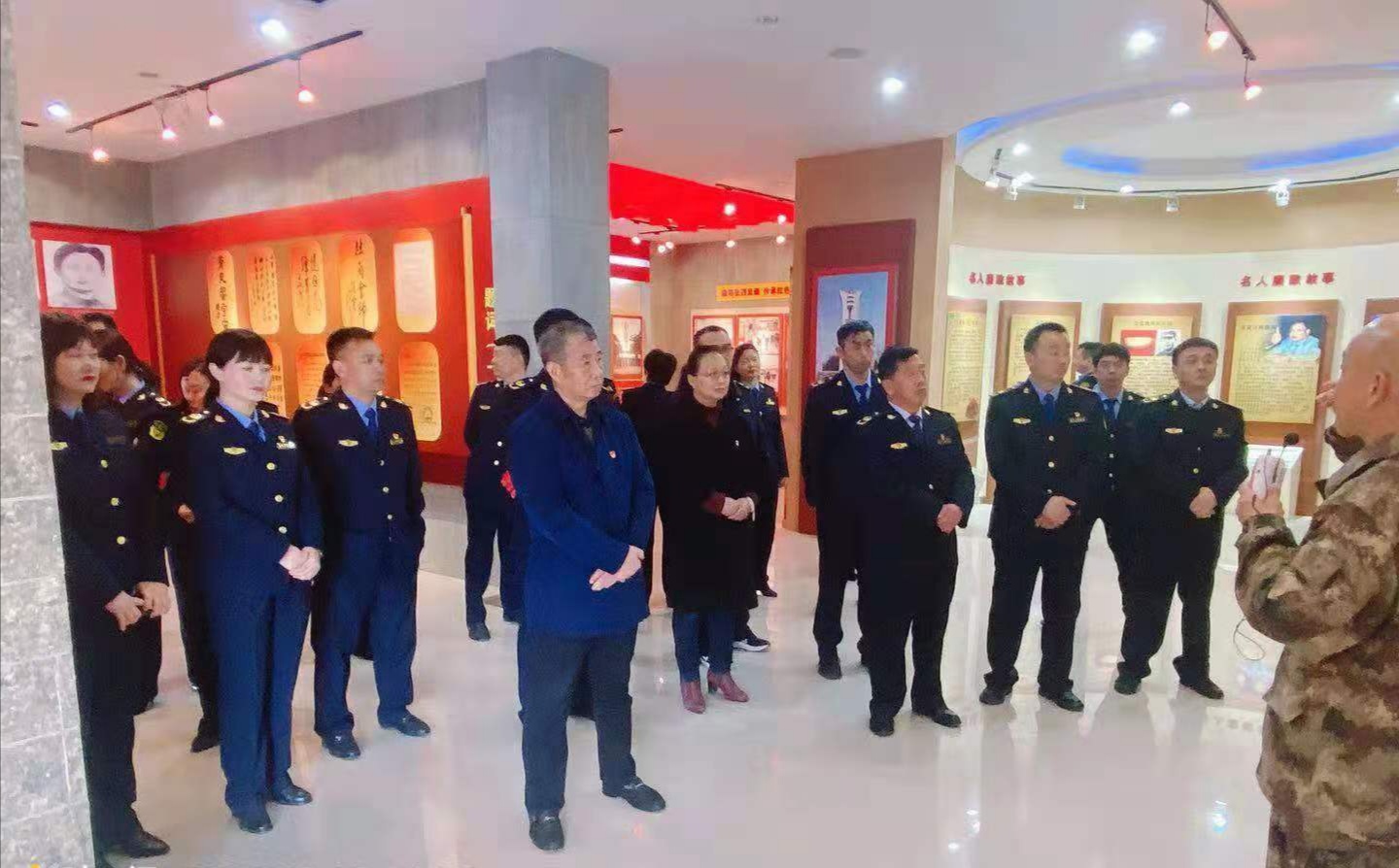 在杜崗會(huì)師紀(jì)念館,管理員朱建璽用樸實(shí)的話語為分局全體中層干部上了一堂生動(dòng)的黨課。分局黨組書記李紅旗和參加教育活動(dòng)的全體人員在一塊塊展板前深情駐足,認(rèn)真聆聽管理員的講解,接受革命洗禮。面對革命先烈一次次豐功偉績,全體人員再次舉起右手,重溫入黨誓詞,他們莊嚴(yán)宣誓,鏗鏘有力,堅(jiān)決用實(shí)際行動(dòng)奮進(jìn)新征程。