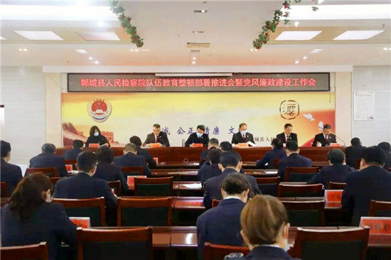 3月11日,鄲城縣人民檢察院召開隊伍教育整頓部署推進(jìn)會暨黨風(fēng)廉政建設(shè)工作會。會議深入學(xué)習(xí)貫徹習(xí)近平新時代中國特色社會主義思想,特別是習(xí)近平法治思想,全面貫徹落實全國、全省、全市、全縣政法隊伍教育整頓動員部署會和高檢院、省院、市院檢察隊伍教育整頓動員部署會暨黨風(fēng)廉政建設(shè)會議精神??偨Y(jié)2020年縣檢察院全面從嚴(yán)管黨治檢工作,分析新形勢新任務(wù),對縣檢察院檢察隊伍教育整頓和今年的黨風(fēng)廉政建設(shè)工作統(tǒng)籌作出安排部署。