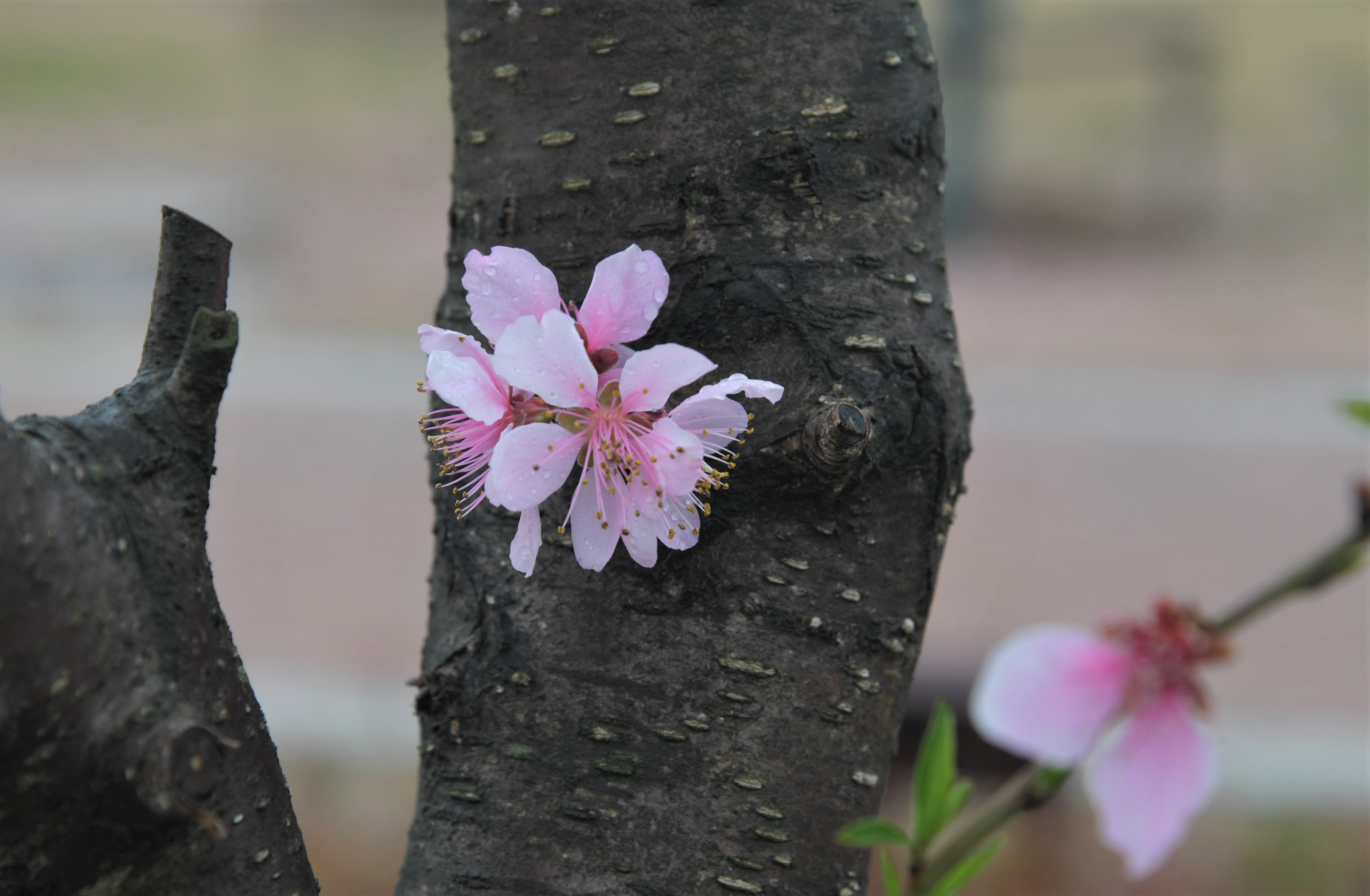 3月26日,春雨淅瀝,商水縣城籠罩在一片雨霧之中?;ㄔ诔睗竦目諝饫飪?yōu)雅盛開,人在如絲細(xì)雨中專注垂釣,花兒含露,天水一色,空氣清新,景色迷人。