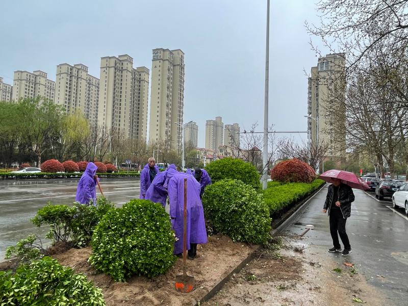 春天正是增綠補(bǔ)綠、扮靚城市“顏值”的好時(shí)機(jī)。3月26日下午,春雨淅淅瀝瀝,記者在市體育中心附近看到,園林工人正在冒雨移走綠植。據(jù)介紹,他們今天要把此地的綠植移走,以便后續(xù)種植花卉。綠植移走后,園林工人給空地蓋上防塵布,防止泥土被雨水沖到道路上。