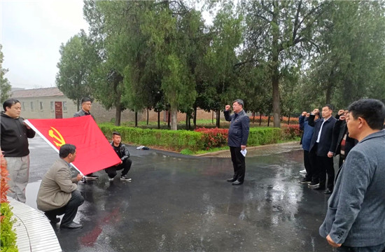 在五七干校舊址,大家通過觀看館內(nèi)大量留存的圖片、文字、實物等珍貴資料,再現(xiàn)了老一輩黨員干部在困境中堅持服務基層、服務百姓的感人場景,受到了一次鮮活的革命傳統(tǒng)教育和精神洗禮。紛紛為“五七”干校干部職工身處逆境樂觀向上、艱苦奮斗的精神點贊。隨后,在鮮紅的黨旗下,大家莊嚴地舉起右拳,重溫了入黨誓詞。