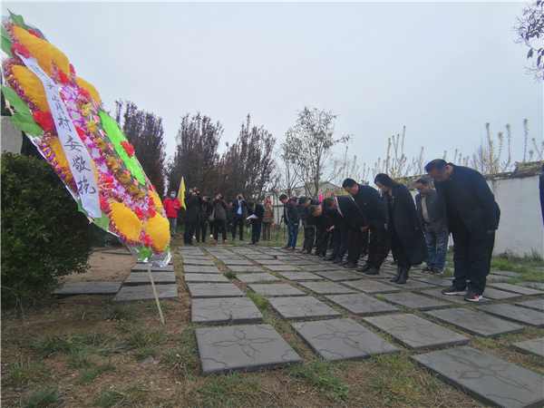 綠樹掩映,豫東特委紀(jì)念塔高高佇立,紀(jì)念碑前整齊地?cái)[放著鮮花。300余名來自老區(qū)的黨員干部、師生代表等在烈士胡曉初墓前靜立默哀、三鞠躬,傾訴哀思,深切緬懷革命先烈的不朽功績(jī)。