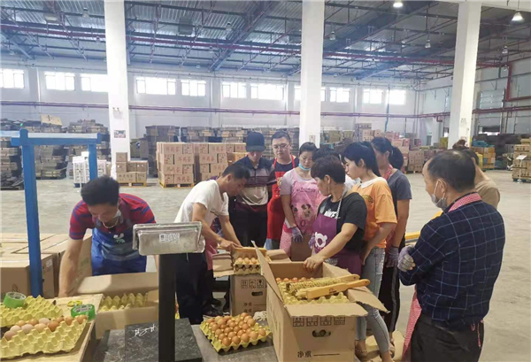 3月26日下午,位于西華縣葉埠口鄉(xiāng)棗崗村的西華縣創(chuàng)聯(lián)養(yǎng)殖專業(yè)合作社里,十幾名工人正在忙碌著將70噸雞蛋裝車運(yùn)往上海、福建、南京等城市?!澳壳埃覀兒献魃绲半u存欄量達(dá)300萬只之多,幾乎每天都有幾十噸雞蛋銷往全國十多個(gè)一線城市超市?!痹摵献魃缲?fù)責(zé)人王二磊介紹說。