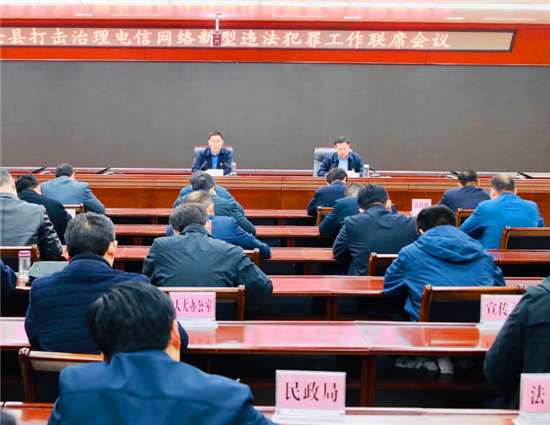 日前,鄲城縣召開打擊治理電信網(wǎng)絡(luò)新型違法犯罪工作聯(lián)席會議??h委常委、政法委書記謝超,副縣長、縣公安局長陳鳳祥出席會議。
