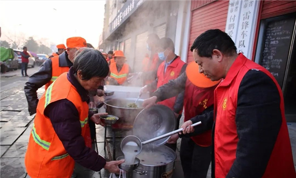 “謝謝黨和政府、工會(huì)組織對(duì)我們的關(guān)懷?!表?xiàng)城市文明路愛(ài)心粥屋前,環(huán)衛(wèi)工閆愛(ài)云端著剛剛盛好的暖心粥開心地說(shuō)。